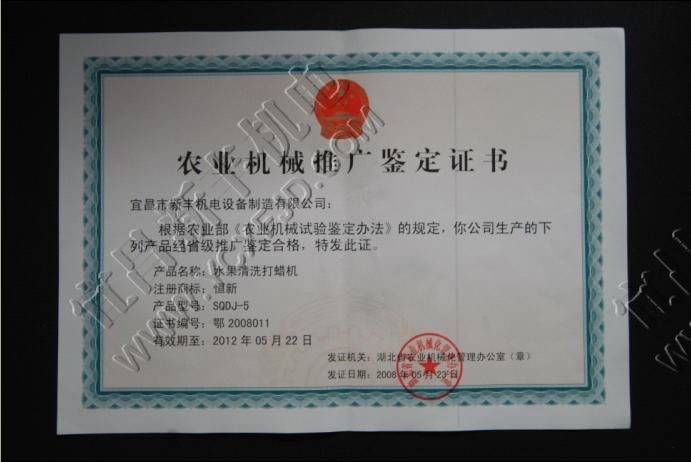 農業機械推廣鑒定證書