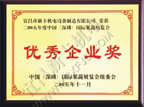 國際果蔬博覽會優秀企業獎
